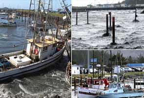 "Misty Bob" Page saw the effects firsthand on Friday. Not wanting to spend the day on the ocean riding out the tsunami, he kept his boat, Misty Anne, in the boat basin. The tsunami roared in, one wave after another. His boat was torn loose, and flung about. He and a friend fended off other boats. They managed to duck into another slip and tie up, riding out surges that continued through the night.